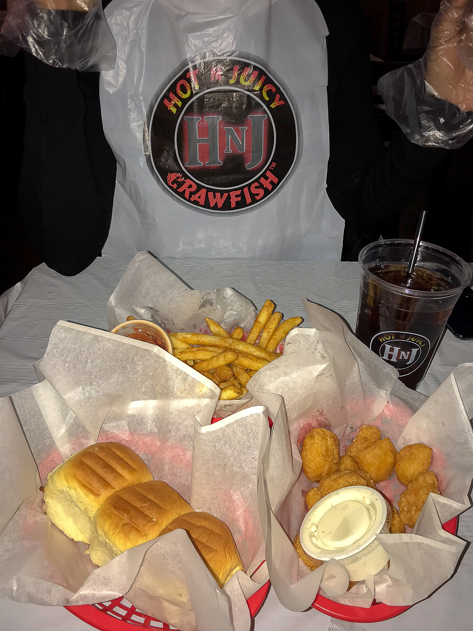Anything seafood is good with me and crab is one of my favourite dishes. Hot n Juicy serve seafood in a bag drenched in their signature seasoning. I ordered 1/2 a pound of crab which was delicious. Side dishes were fries, hawaiian rolls and corn fritters – the side dishes left a lot to be desired.